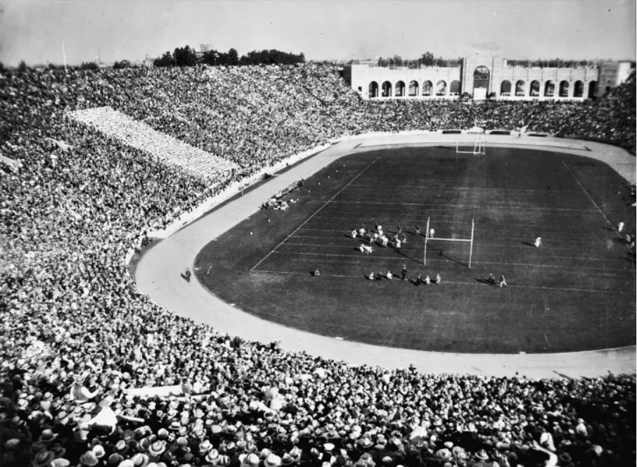 - Football in those years was not only entertainment but a tool for uniting society. The Los Angeles Memorial Coliseum hosted important social events.