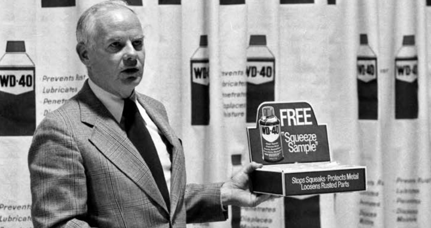 Разрабатывая соединение WD-40, технические специалисты “Rocket Chemical Company” фактически изобрели первое в мире многоцелевое средство. Они создали раствор, который является моющим средством, смазкой, растворителем и ингибитором ржавчины. Формула сработала настолько хорошо, что сотрудники начали угонять WD-40 с завода, чтобы использовать его самостоятельно. Они открыли множество других приложений для продукта, включая защитные инструменты, смазочные машины и ослабление гаек и болтов. Через несколько лет Норм Лоусон экспериментировал с размещением WD-40 в аэрозольных банках, рассуждая, что потребители захотят использовать продукт дома. WD-40 массово начали продавать в Сан-Диего в 1958 году.
