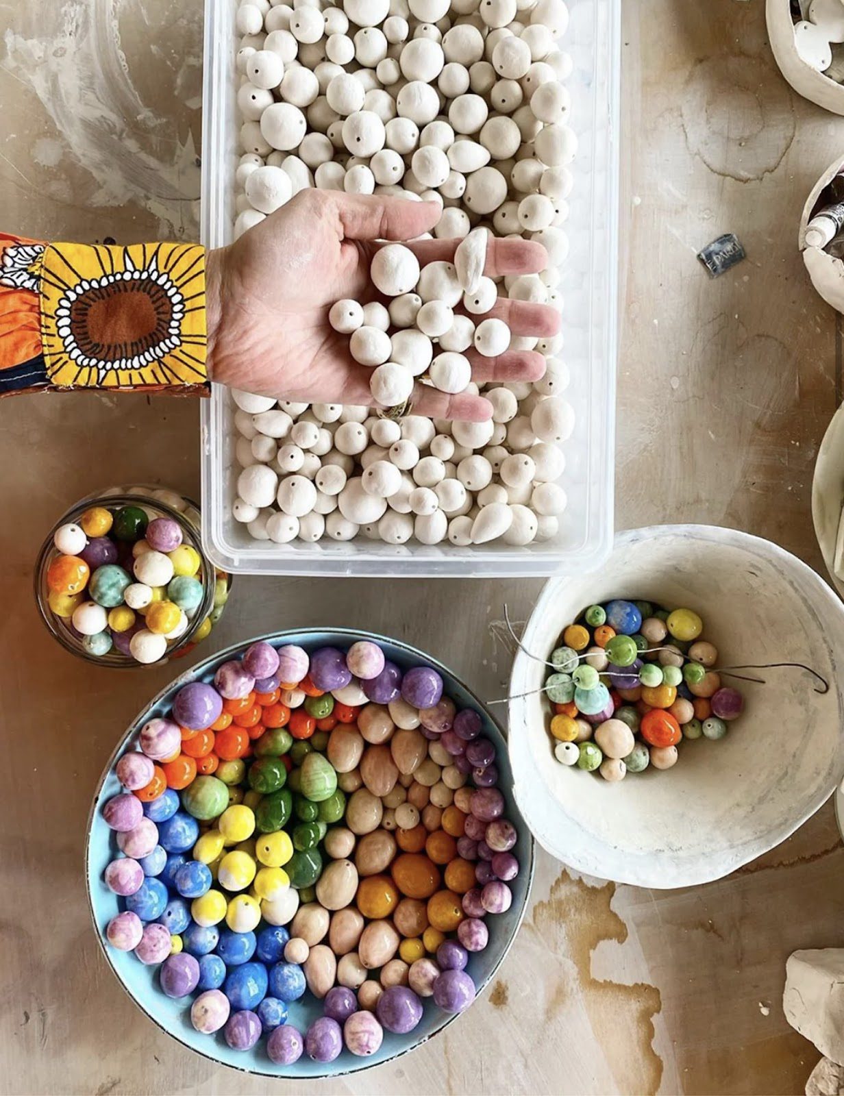 Створення кожної намистини – це дуже медитативний процес. Дизайнерка виготовляє близько 30 бусин на годину кожні кілька днів. “Пандемія була для мене серією злетів та падінь, але творчо кажучи, це було чудово. Я була натхненна роботою в саду, приготуванням їжі та створенням різноманітних речей, які я ніколи не думала, що створю”. Жінка продовжувала створювати молитовні намистини, навіть коли світ повернувся до певної подоби нормального життя. “Ці намистини є відмінним показником часу. Вони схожі на особистий календар для позначення днів в очікуванні майбутнього і того, що нині нам невідомо”.